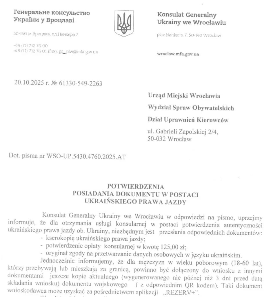 🔹 Важливо розуміти реальні терміни. На сьогоднішній день процедура заміни українських прав на польські у Вроцлаві займає близько 2–3 місяців. Основне очікування — відповідь українського консульства, яке перевіряє справжність вашого посвідчення. Отримати права за 7–14 днів, як це було раніше, вже неможливо. Процедура змінилась, і консульський етап займає значну частину загального строку.